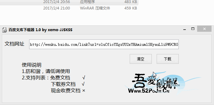 是一个很小的软件!如上图所示:把你需要下载的百度文库文档连接复制到软件上,然后点击下载就行了。