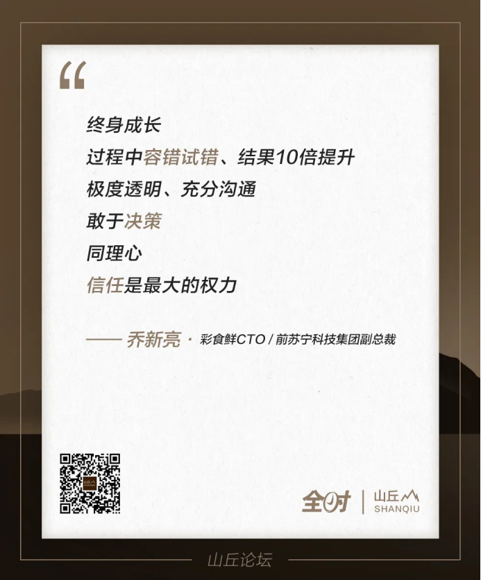 以下是全时CEO陈学军和彩食鲜CTO&前苏宁科技集团副总裁乔新亮在山丘论坛第二期的对话实录(经全时编辑整理):