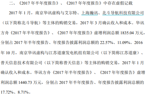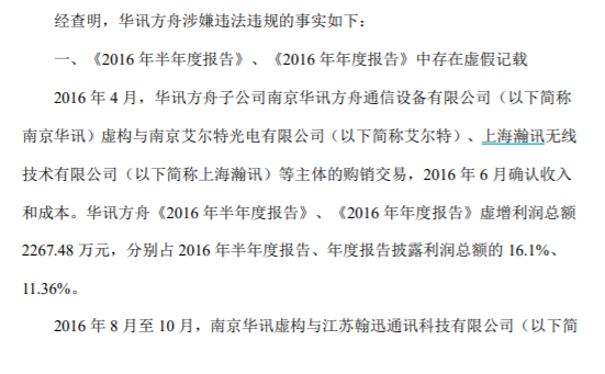 经查明,华讯方舟《2016年半年度报告》、《2016年年度报告》、《2017年半年度报告》、《2017年年度报告》、《2018年半年度报告》中存在虚假记载。