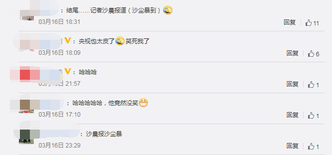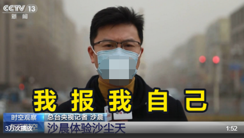 3月15日,我国遭遇近10年最强沙尘天气,强度大范围广。为让大家更好了解沙尘天气感受,央视派出最“合适”记者——央视记者沙晨在北京的沙尘天气里报道沙尘暴。网友:调皮了~