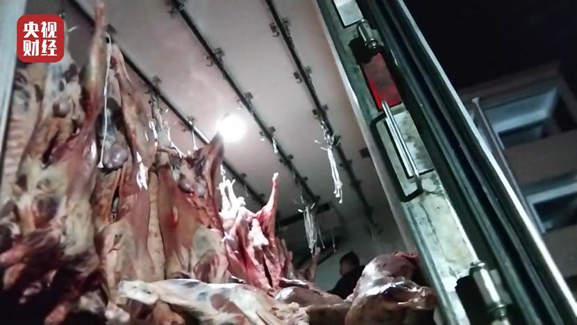 只见车内悬挂着一扇扇羊肉,这些羊腿明显瘦肉多,肉质坚硬,颜色发深。商贩表示,之所以不在市场内的商铺上销售,是因为这些羊肉无法通过检测。
