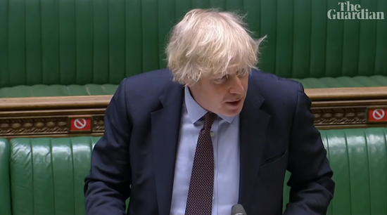 约翰逊16日在议会下院做提交报告的发言 (视频截图)