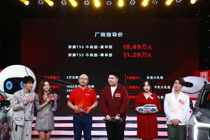 不仅如此,在当天京东直播上市过程中,一汽奔腾为守候在云端的用户,带来诱惑力满满的“牛犇权益”。涵盖5万元现金购车红包、1000元和500元购车抵扣券、超级生活大礼包、牛气冲天礼包、奔腾T55牛犇版限量车模以及定制牛金饰等超级福利,用爱拉近与用户之间的距离。需指出的是,除了京东直播间,奔腾T55牛犇版还通过一汽奔腾官网、汽车之家、易车等直播平台,为用户豪掷5万元现金购车红包,打造超牛省钱价值体验。