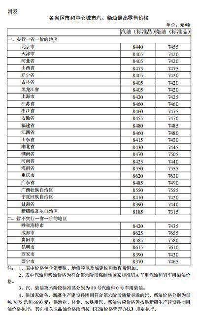 根据近期国际市场油价变化情况,按照现行成品油价格形成机制,自2021年3月17日24时起,国内汽、柴油价格(标准品,下同)每吨分别提高235元和230元。调整后,各省(区、市)和中心城市汽、柴油最高零售价格见附表。相关价格联动及补贴政策按现行规定执行。
