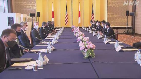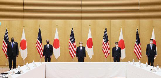 当天早些时候,布林肯和奥斯汀与茂木敏充及岸信夫举行“2+2”会谈, 这是日本菅义伟内阁和美国拜登政府上台后的首次。会谈着重讨论了中国《海警法》等涉华议题。