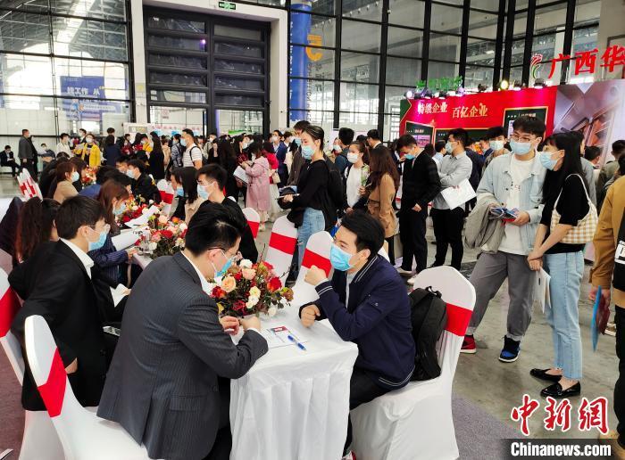 3月13日,2021年春季广西人才交流大会在南宁国际会展中心举办。图为招聘现场。 黄艳梅 摄