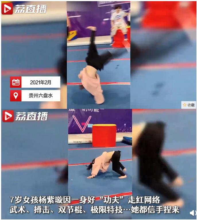 最近,贵州7岁女孩杨紫璇因一身"好功夫"走红网络。各种高难度空翻、侧手翻信手捏来!武馆教练感慨:她天生就是为武而生的!为了进一步开发天赋,她还被送去练习极限特技。除了一身绝技,小紫璇治愈的笑容也圈粉无数。小紫璇说:“想成为世界冠军,为国争光。