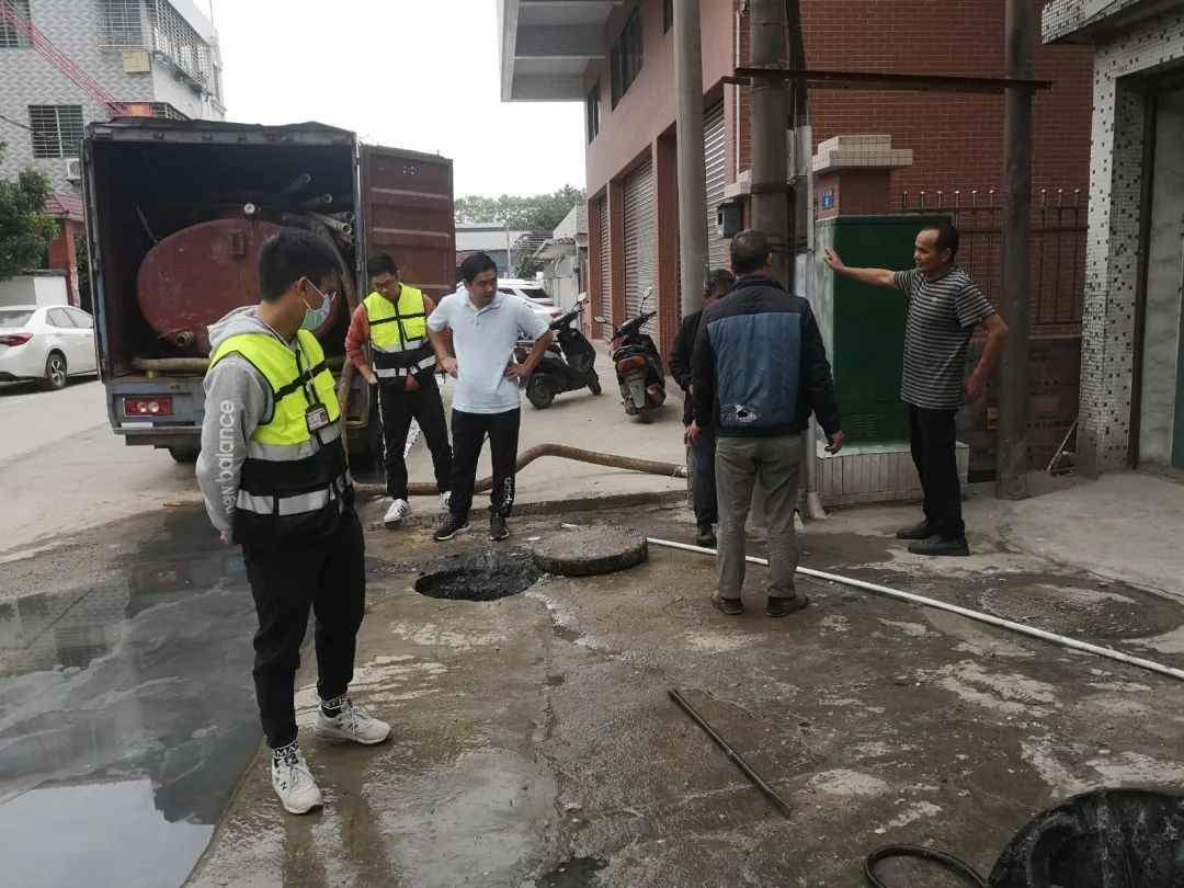 到现场时,工作人员发现店铺处于休业状态,店内人员均已返乡过年。经检查,工作人员确认堵塞源头为某餐饮店的排污井口,并联系该餐饮店负责人要求其返店对堵塞的井口和化粪池进行清理,通过检查污水处理设备运行情况,确保污水达标后方可排入市政管网。