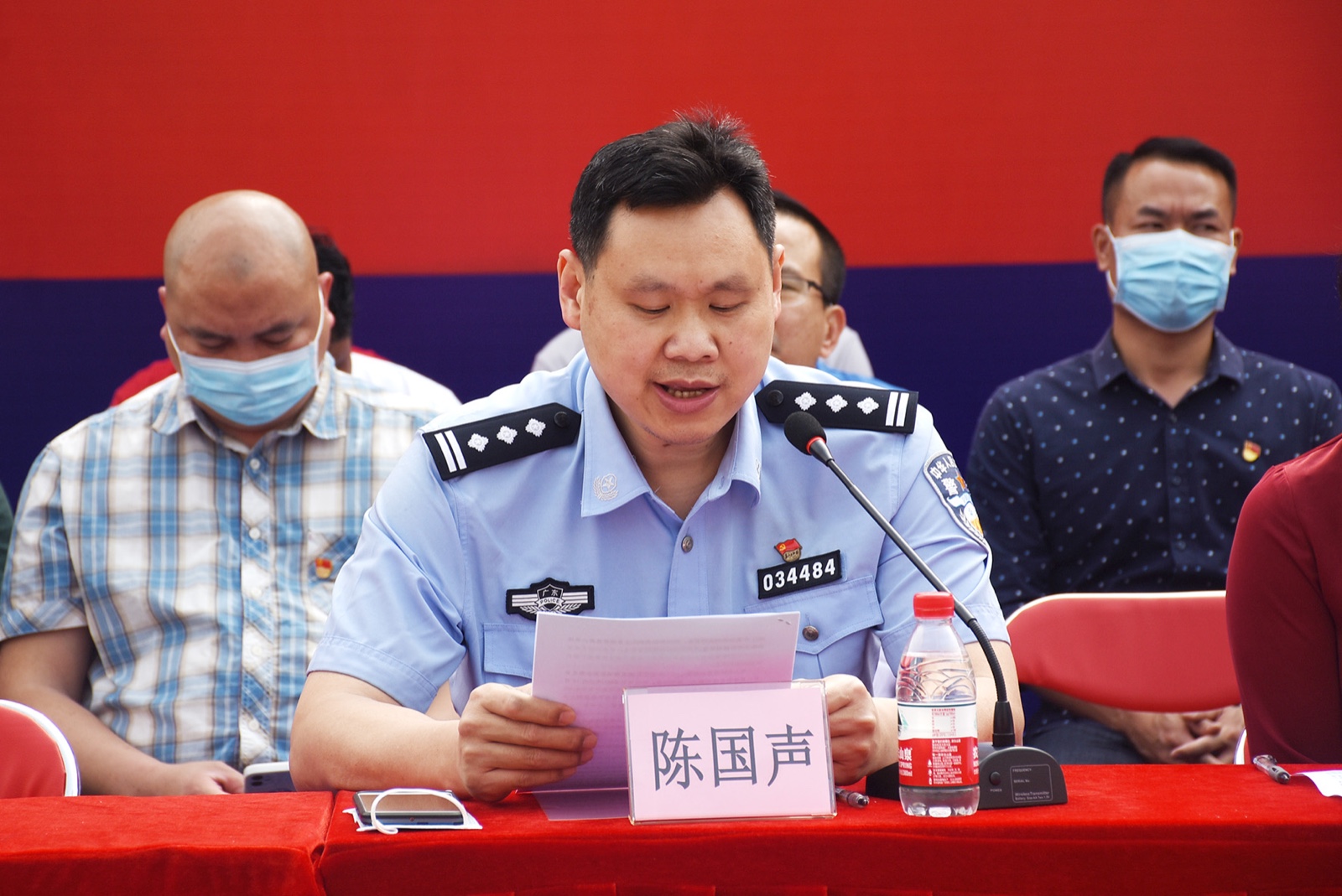 大石派出所副所长陈国声宣读《2021年大石街微型消防站训练及考核方案》。▼