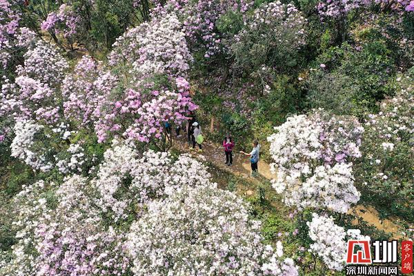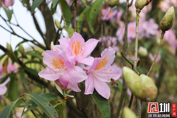 见圳客户端·深圳新闻网3月16日讯(记者 刘晨 实习生 覃钰清)近日,位于深圳罗湖区的梧桐山毛棉杜鹃陆续进入盛花期,点缀在山间的毛棉杜鹃灿烂盛开,蜂蝶飞舞间,将深圳的南国春意渲染得更加浓烈。不少市民游客前往梧桐山赏花踏青,饱览春意。