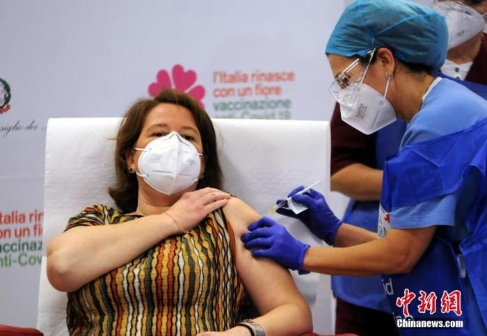 当地时间2020年12月27日,意大利巴勒莫, 人们在医院有序接种预防新冠的疫苗。图片来源:ICphoto
