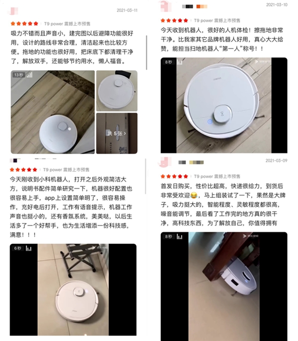 作为兼顾扫地、拖地、除菌、除味等功能的“神仙存在”,科沃斯 Ecovacs 地宝T9 Power扫地机器人上市短短几天时间,商品好评率就达到96%,并且集合了用户们从颜值、避障、拖地、节能、智能、香氛等各个角度的满意评价。我们可以直观的感受到消费者对这款“京品家电”的满意程度。