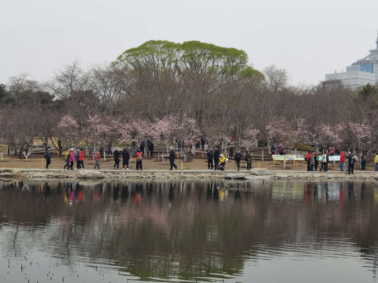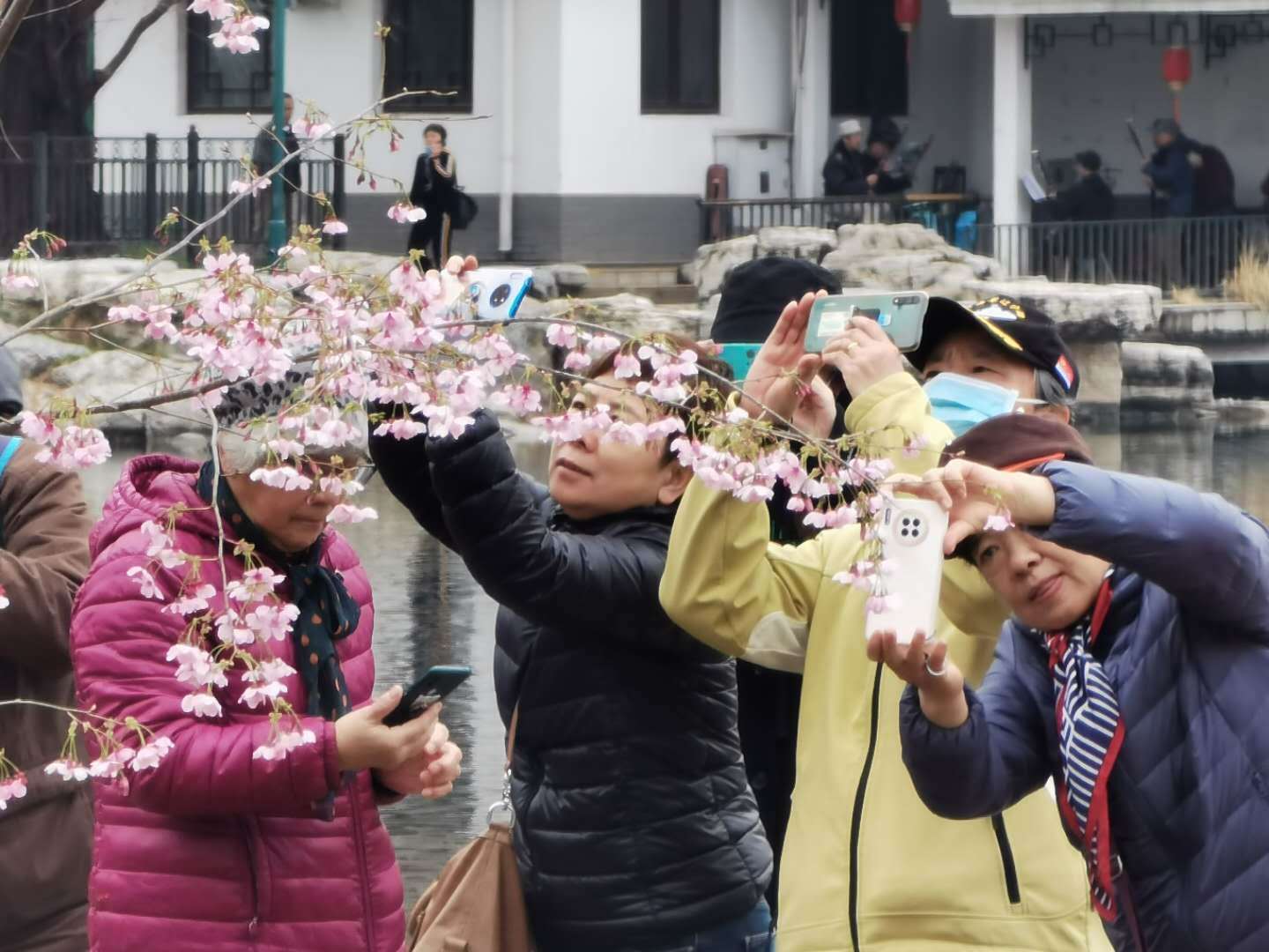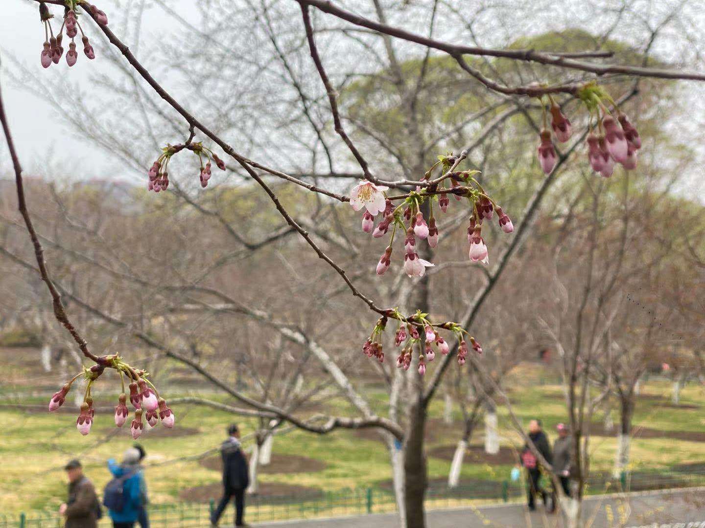 3月18日,游客在玉渊潭公园樱花园里欣赏初放的杭州早樱。随着春暖花开,到公园踏青赏花的游客市民逐渐增多,玉渊潭公园也在做好疫情防控的基础上,开启2021年春季赏花文化活动暨樱花鲁冰花花卉联展,满足游客们的赏花愿望。