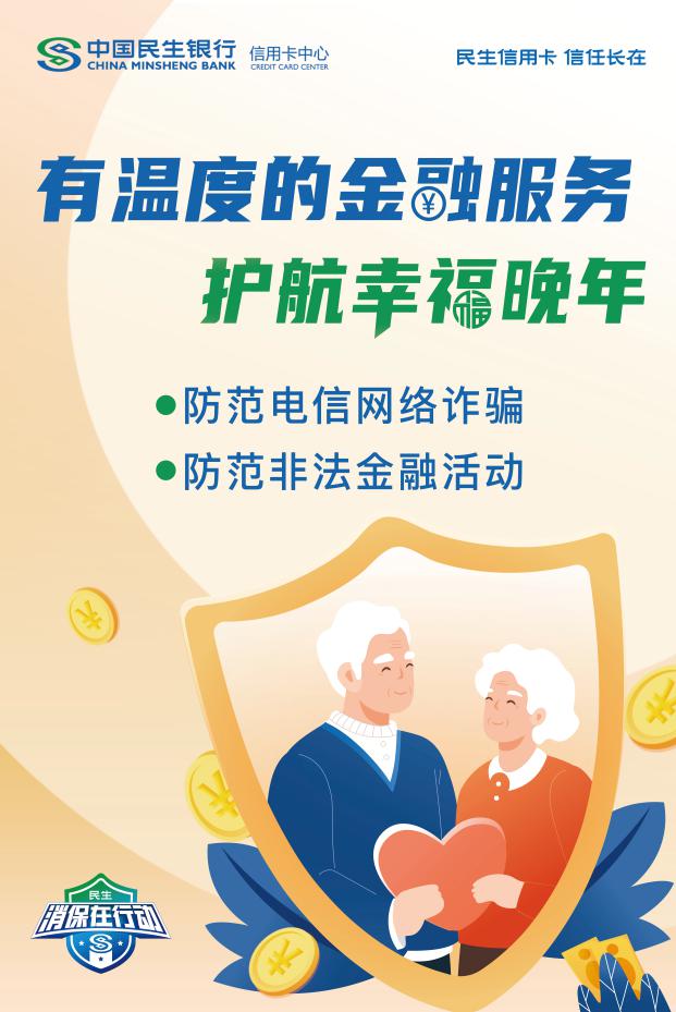 近年来,随着互联网应用的广泛传播,越来越多的老年人开始接触网络,通过电脑、手机上网浏览新闻、支付购物、聊天社交已成为他们生活的常态。然而,老年人在享受互联网带来便捷的同时,电信诈骗、非法集资等圈钱陷阱也随之而来。在此,民生信用卡中心消保小卫士教您如何保护个人信息,识别非法集资,护航老年人幸福晚年。