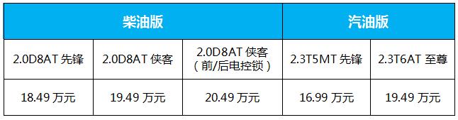 新车搭载全新调校的2.3T+6AT的黄金动力组合,拥有170KW的最大功率和345N·m的超强扭矩。还经过了专业越野化设计,涡轮增压在发动机转速1000rpm便会介入,低转速大扭矩的特点让其在越野工况下能够应对自如。得益于其采用独有的闭式冷却循环技术,全新2.3T发动机极限工况耐高温上限达126℃,以更高标准匹配极限环境越野。