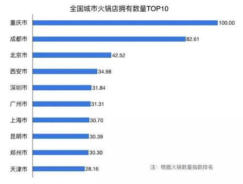 而另一组大数据却显示,截至2020年12月,中国主要城市火锅店数的排名中,贵阳每万人拥有7.03家火锅店,成都则位列第四,重庆第六,每万人分别拥有5.76和5.72家火锅店。