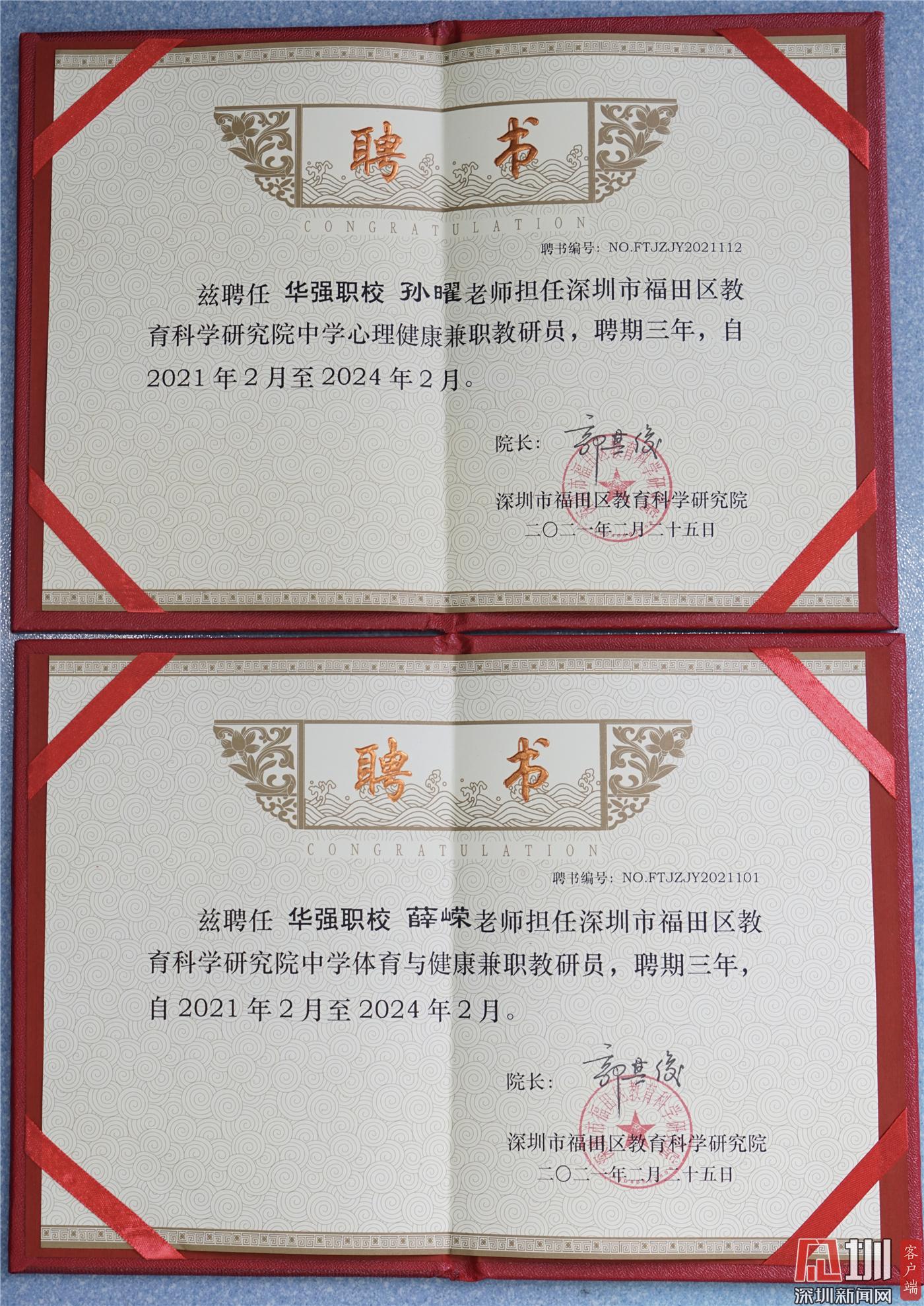 同时,会上宣读了首批兼职教研员名单,华强职校孙曜老师获任兼职心理教研员、薛嵘老师获任兼职体育教研员。福田区教科院课程部张玉彬部长为兼职教研员颁发聘书,并鼓励他们积极参加福田区的教研活动,为教研建设作出贡献。