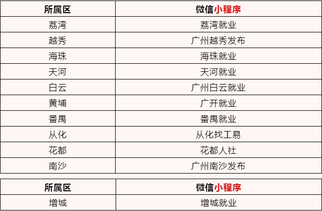 2.按单位所属区关注各区公共就业服务机构微信公众号或微信小程序
