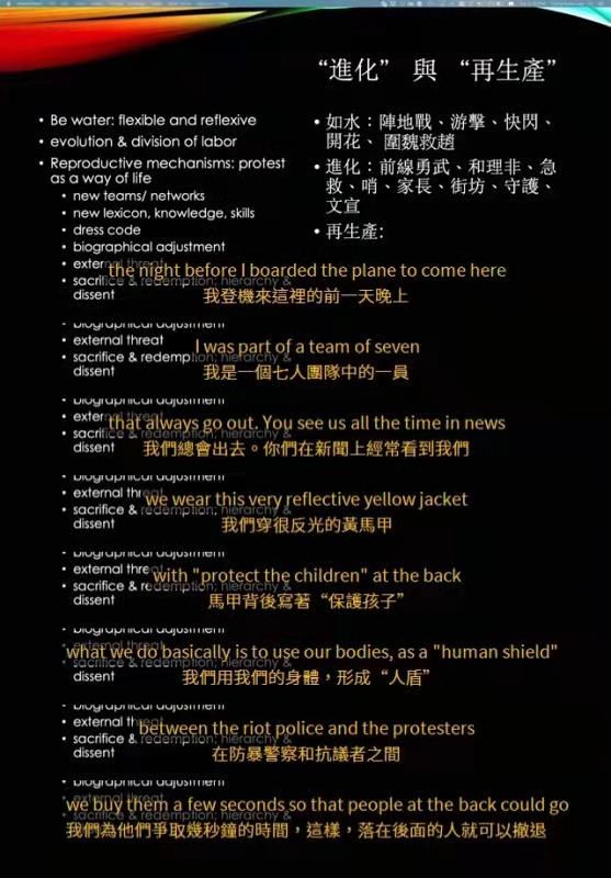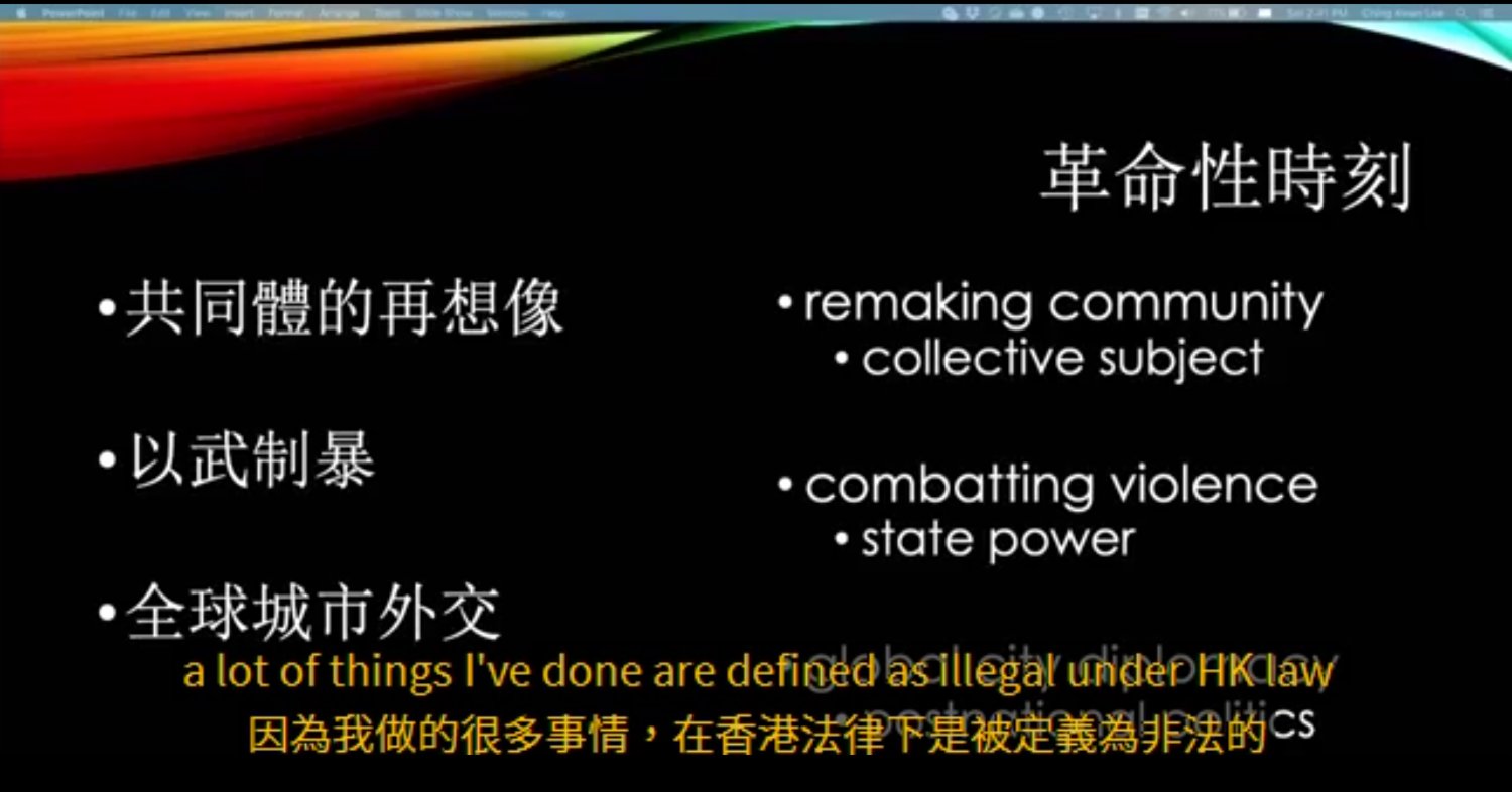 此外,她还通过分析「黄色经济圈」、「非官方外交」、「邻里自卫队」等案例,得出香港人已经通过黑暴运动「把造就真正全球城市带到了政治层面」。正是基于李静君深度参与和研究黑暴运动,她才进一步得出香港进入「长期革命」,并且已经形成「想像的共同体」、「以武制暴」、「全球城市外交」的结论。在有听众质疑这一「革命」是否真正形成了国家性质的「共同体」,是否能持续下去时,她也再次重申自己的结论,并且认为「这只有定义上的区别」。