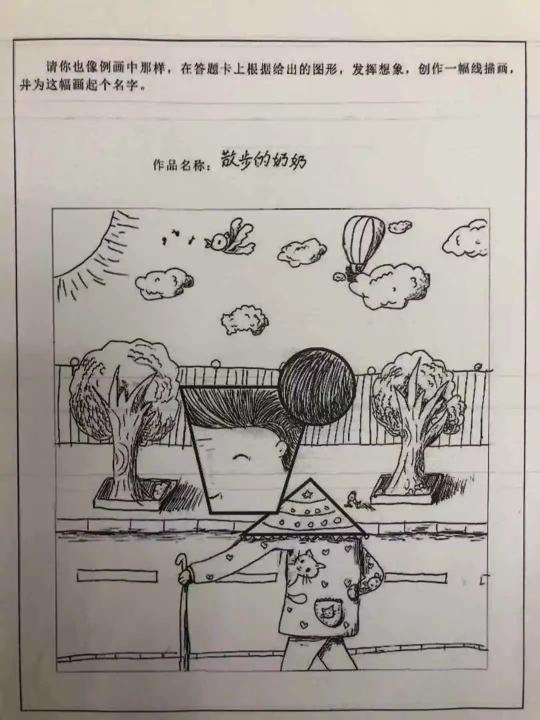 给你一个“圆形、梯形和三角形”的简单组合图案,你会创作出什么样的线描画?
