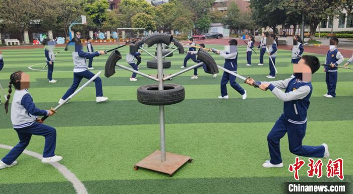 据了解,学校武术队负责教师曾科是成都市非物质文化遗产传承人,该校从2011年起将武术特色课程引入校园,至今已开展了10年。