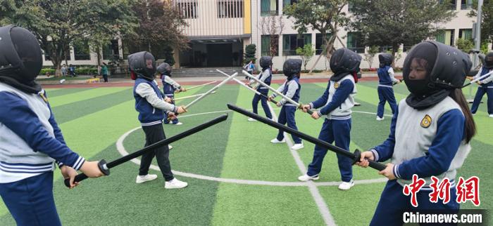 中新网成都3月18日电 近段时间,成都市一小学体育课教传统五行刀法的视频在网络火爆走红,视频中小学生舞剑招式不输武打明星。