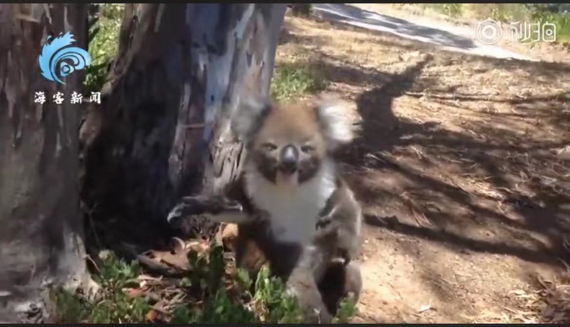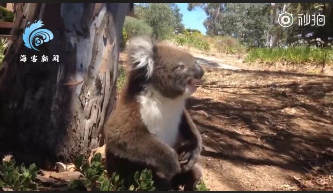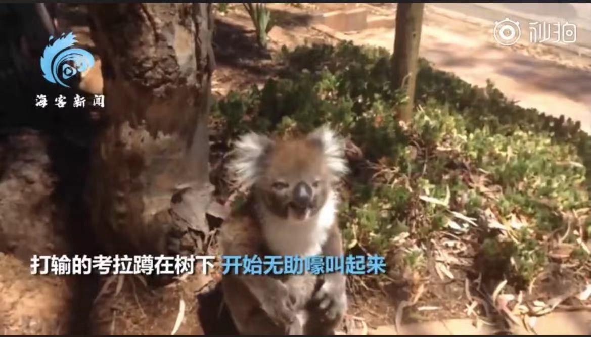 视频中的这只考拉两次试图与对方争夺一棵树失败,被彻底打下后,它蹲在树下狂嚎,一直哭喊到声嘶力竭,画面魔性。