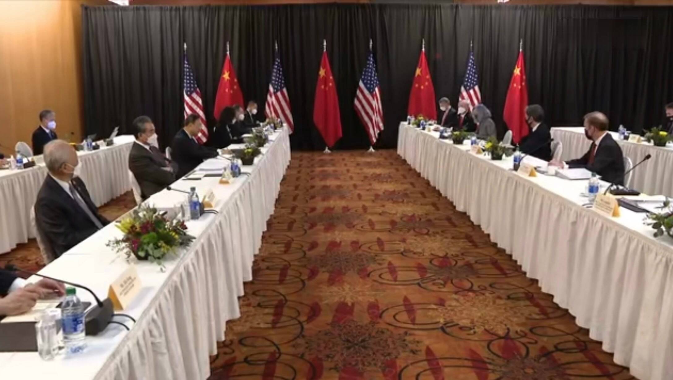 北京时间周五上午,美国当地时间周四下午大约1点到5点,中美高层战略对话的第一场会面大约进行了4个小时。两国代表团晚上将继续进行对话。美媒称,由于疫情缘故,中美代表团在周四的晚饭是各自解决的。