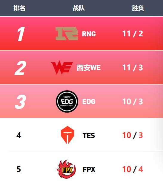LPL联赛排名