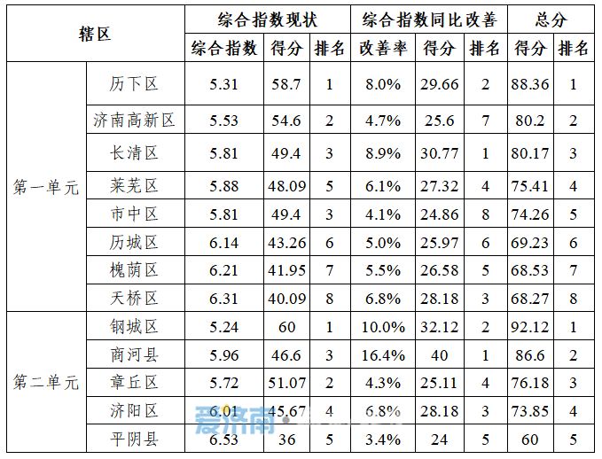 原标题:济南各区县1-2月份环境空气质量排名出炉