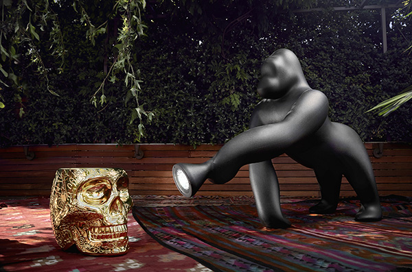 撑地行走、手举射灯的大猩猩打破了原本很多人眼中的怪兽印象,设计师将“狂野”和“温暖”这种奇妙的反差效果勾勒出来,灯具成了“室内守卫者”,这与电影原型产生呼应:KONG貌似一只巨大怪兽,但其实是自然的守卫者。