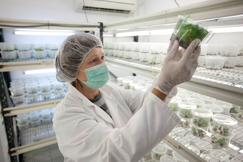 都乐香蕉从都乐生物技术实验室中育苗,在都乐的生物技术实验室里,香蕉根部被仔细地切成片,在实验室条件下生长数周,以防止感染疾病。
