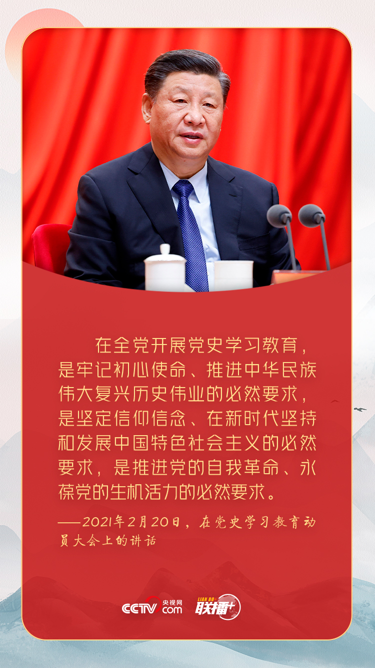 “在全党开展党史学习教育,是党中央立足党的百年历史新起点、统筹中华民族伟大复兴战略全局和世界百年未有之大变局、为动员全党全国满怀信心投身全面建设社会主义现代化国家而作出的重大决策。”