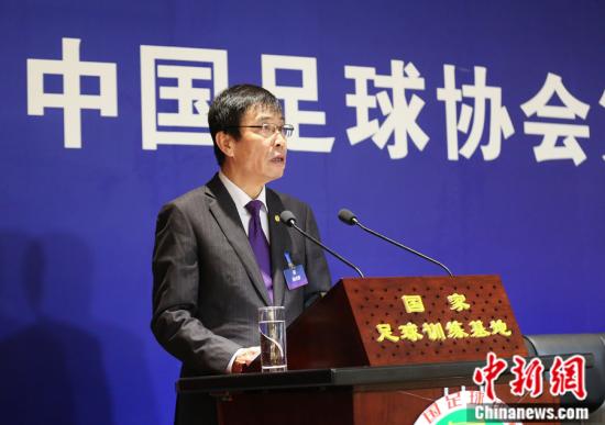 资料图:2019年08月22日,陈戌源在第11届足代会上讲话。 中国足协供图
