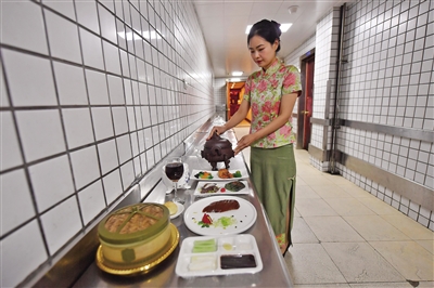 全聚德和平门店,工作人员在介绍全聚德推出的小份菜和单人餐。