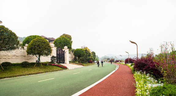 跑过了玄天秀水生态画廊赛道,紧接着就来到了风景宜人的奇彩梦园景区,再往前就是西郊绿道,选手们将跑过马滩村会客厅、河水村会客厅以及荷和原乡景区。这条赛道位于铜梁近郊农村,赛道两边处处彰显着春天的勃勃生机。在马滩村会客厅附近,跑道两边开满了金灿灿的木春菊,一簇簇、一丛丛,迎着春风起舞。一路跑来,山、水、林、田、湖,和谐相生,跑起来惬意极了!
