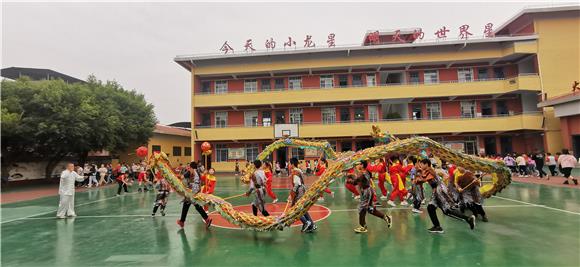 学生排练新的舞龙套路。特约通讯员 赵武强 摄