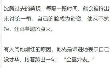 星岛环球网消息:据北青网报道,近日,有网友翻出一段沈腾早前的采访视频。采访中,当被问及自己爆红的原因时,沈腾先是谦逊地称自己没才华,紧接着又表示:“全靠外表”。
