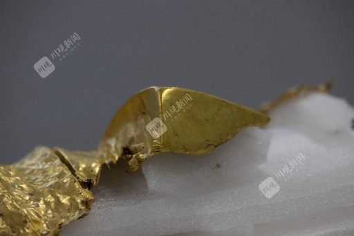 李玉牛回忆,“最初看到金箔的一角,大家都没有太多的设想。”随着考古发掘人员用竹签、竹刀和油画笔刷子小心细致地清理金箔周围的泥土,没想到金箔所展现出来的体量越来越大,与周围散落的小金圆片和残碎的象牙形成了鲜明对比。