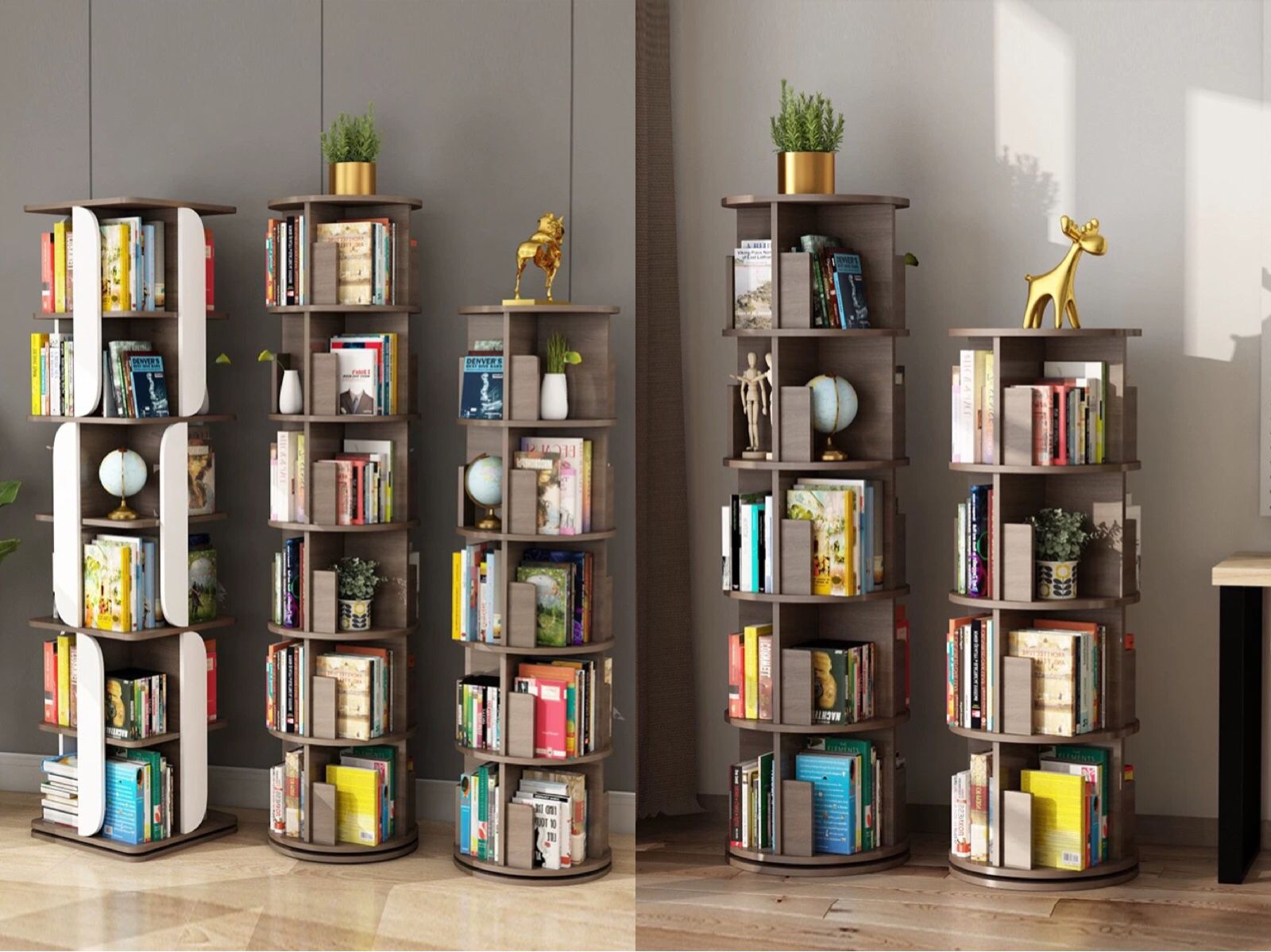 空间虽小,但也得来点文艺范。这款创意实木旋转书架造型富有艺术感,让家居环境充满书香气的同时,还显得时尚。重要的是,这款书架看起来小,但容量较大,适合在小空间中放置。除各种书本以外,书架中也可以穿插摆放艺术摆件,让空间流淌文艺气息,变得简约而不简单。