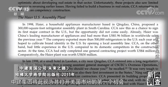 “当时海尔计划在南卡罗莱纳州周建立30万平方英尺的冰箱组装厂,中建集团将此视为其打开美国市场的第一个机会——成为该项目的总承包商。在拿下项目后,中建集团采取了快速建设法,工程1999年4月动工,2000年3月海尔已经开始生产冰箱。对于中建集团来说,这是他们在美国市场上第一次作为总承包商的成功。”