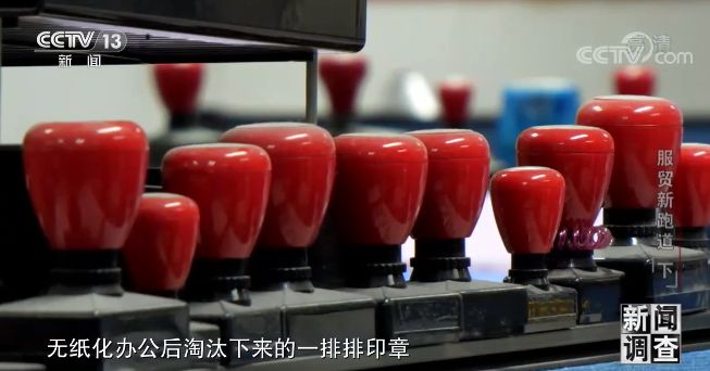 在中国贸促会专利商标事务所的办公室里,无纸化办公后淘汰下来的一排排印章已经成为往日工作模式的纪念。