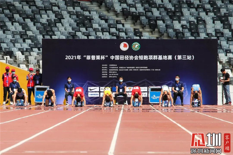 中国田径协会短跑项群基地赛由中国田径协会主办,广东省田径协会、深圳市龙岗区文化广电旅游体育局和佳兆业文体科技集团承办,是2021年首个国家级别的短跑特许赛事。