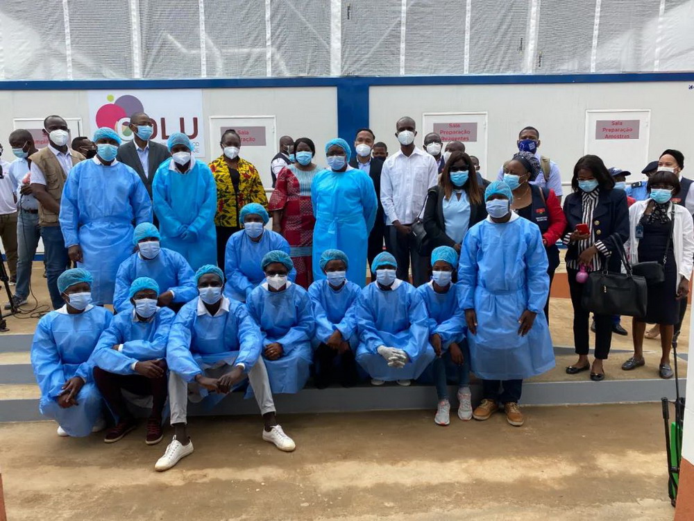 当地实验室技术人员在安哥拉火眼实验室外部。