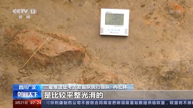 三星堆遗址考古发掘队执行领队、四川省文物考古研究院博士冉宏林:因为红烧土块的一面是比较平整光滑的,然后它另外一面呢,有那种,就是半圆形的这种,就是半圆柱体的那种凹槽。如果说对先前实际成都平原这个建筑的研究的话,就知道它是属于那种木骨泥墙或者说是竹骨泥墙的构造所形成的,所以说基本可以明确它是属于墙壁的残块。