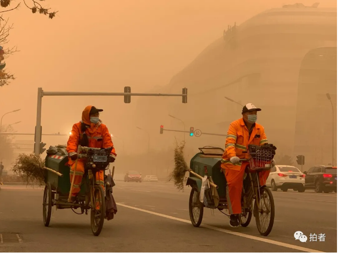 蒙古国吹过来的沙尘暴袭击下北京的黄色天空。/CGTN报道截图