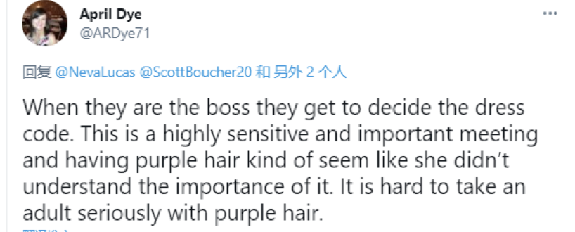 值得注意的是,当中国网友被中方翻译人员的表现圈粉时,不少美国网友,却对美方代表团中一位染紫色头发的翻译感到不满。