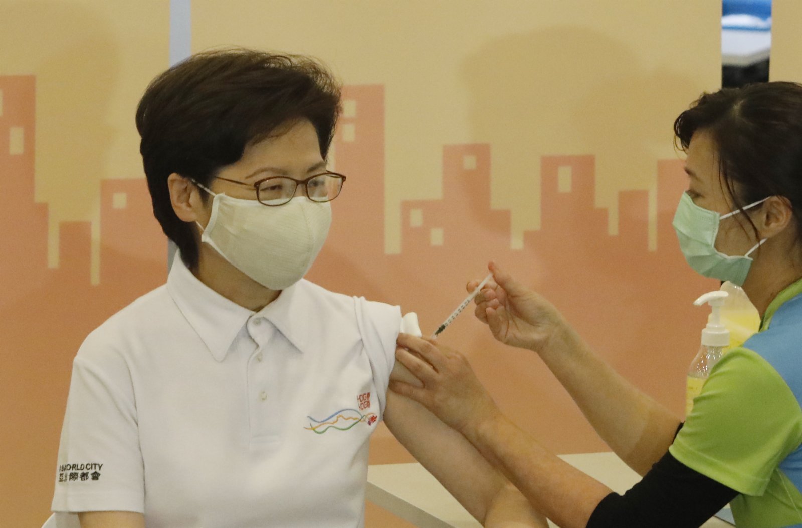 林郑月娥上月22日率先接种第一剂科兴疫苗。资料图片