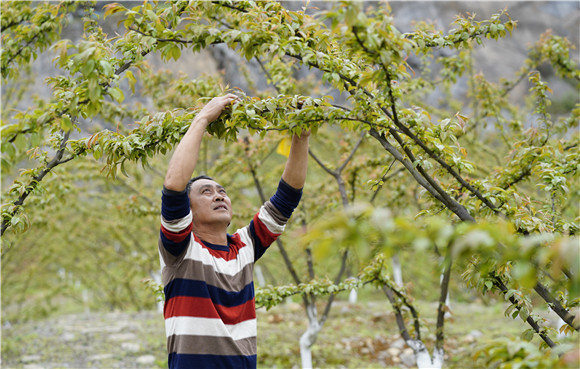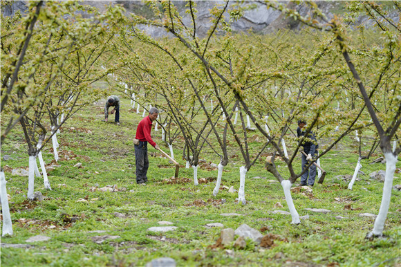 村民在重庆市北碚区静观镇中华村的矿山果园劳作。