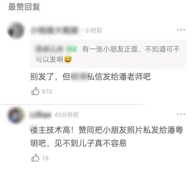 除了被曝光的顶顶的背影照之外,该名网友还称自己拍到了一张顶顶的正脸照,但是不知道要不要发出来,于是网友们纷纷表示不要发出来,还建议他把照片发给潘粤明,毕竟潘粤明也没机会见到顶顶,能有张新照片看看也是不错的,真是既好笑又心酸。